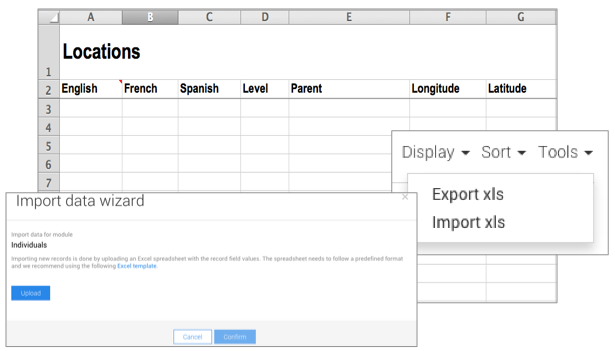 - Importación masiva de individuos, organizaciones y localizaciones. Interfaz fácil de usar. - Disponible en la lista de vistas o en el menú de configuración. - Capacidad para cancelar la importación hasta 5 cinco días después de la fecha de dichas importaciones. |