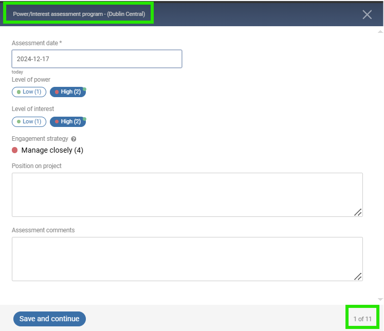 - Pour évaluer immédiatement la partie prenante, cocher Évaluer la partie prenante.